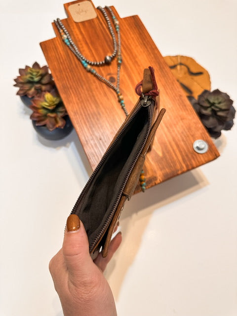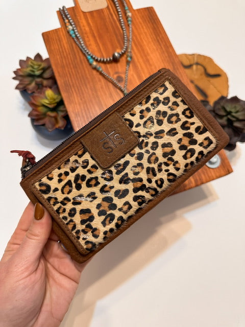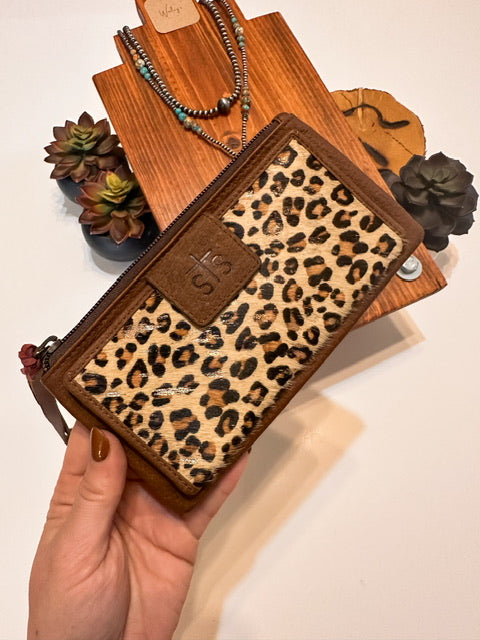 The Great Plains Haley Wallet features luxurious hair on hide with leopard print and copper foil accents.